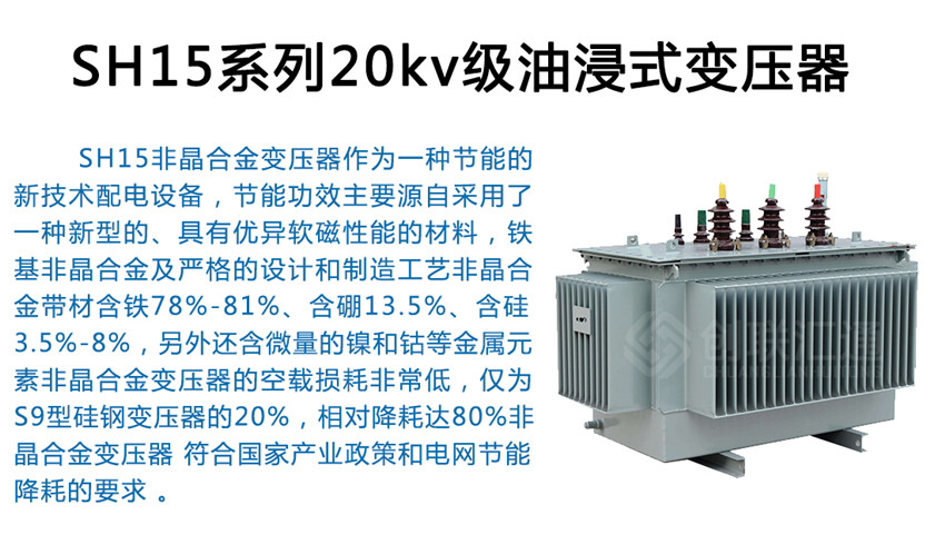 SH15非晶合金變壓器作為一種新一代節(jié)能產(chǎn)品,可以普遍適用于住宅小區(qū)、學(xué)校、工礦企事業(yè)單位以及社會公共設(shè)施??稍趹魞?nèi)(外)使用,容量在315kVA 及以下時可安裝在桿上,海拔高度不超過1000m。